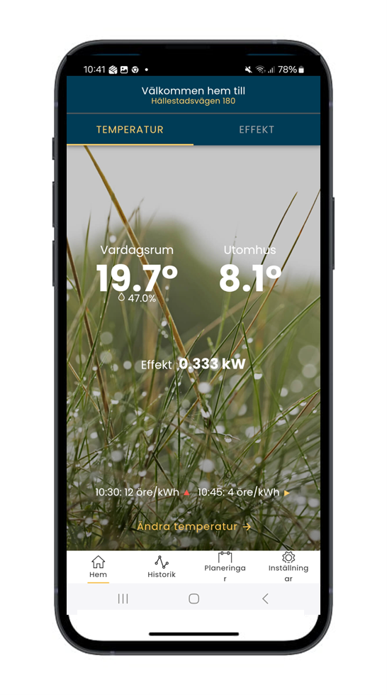 I appen gör du dina inställningar samt ser all information om temperaturer och Ngenics Tunes styrning av din fjärrvärmecentral.